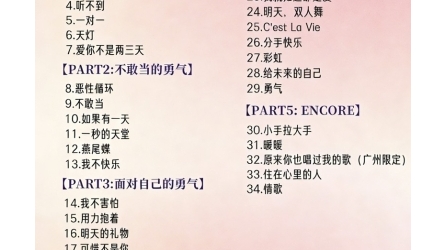 2026「Best,茹果我不唱情歌」梁静茹巡回演唱会歌单